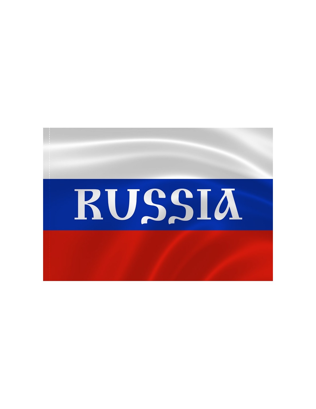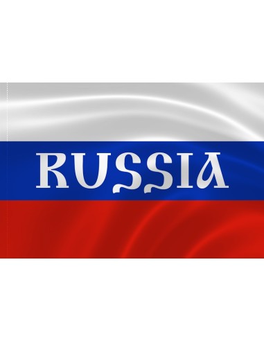 Классический флаг России (триколор) с надписью "Russia" белого цвета.