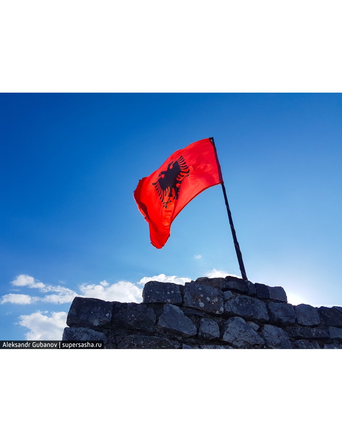 Прямоугольный флаг темно-красного цвета с двуглавым черным орлом по середине. Две головы орла символизируют правительство и церковь. Орел использовался в Албании со времен средневековья. На некоторых флагах над орлом изображается звезда. Красный цвет означает силу и честь албанского народа, а также кровь албанских патриотов, пролитую в борьбе против захватчиков.