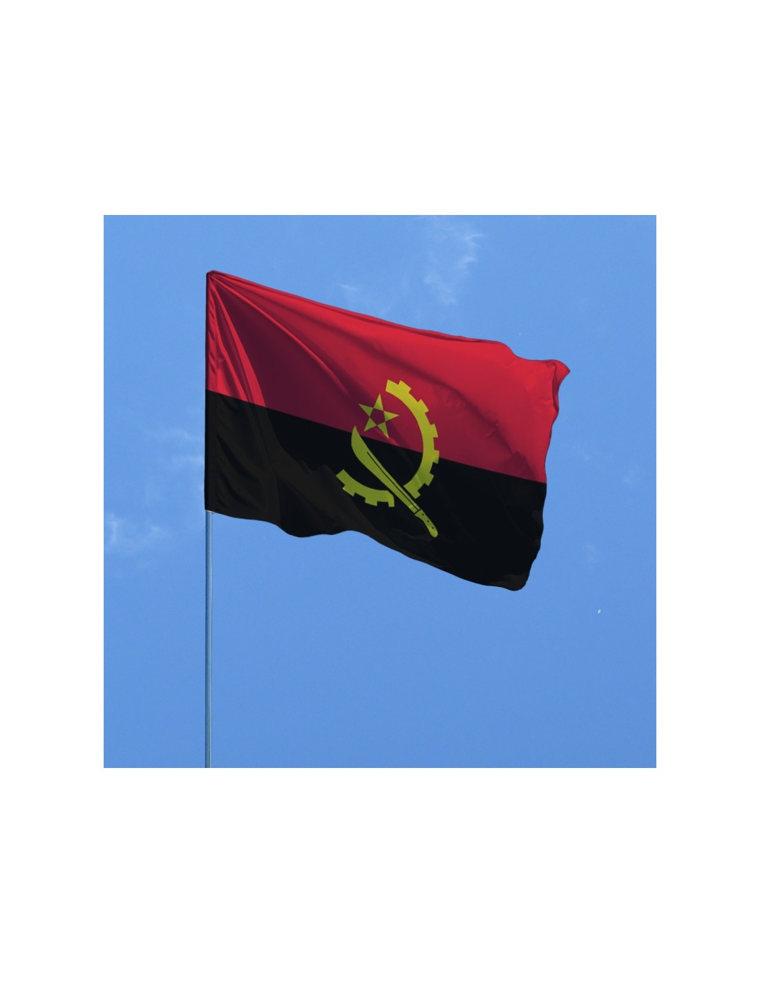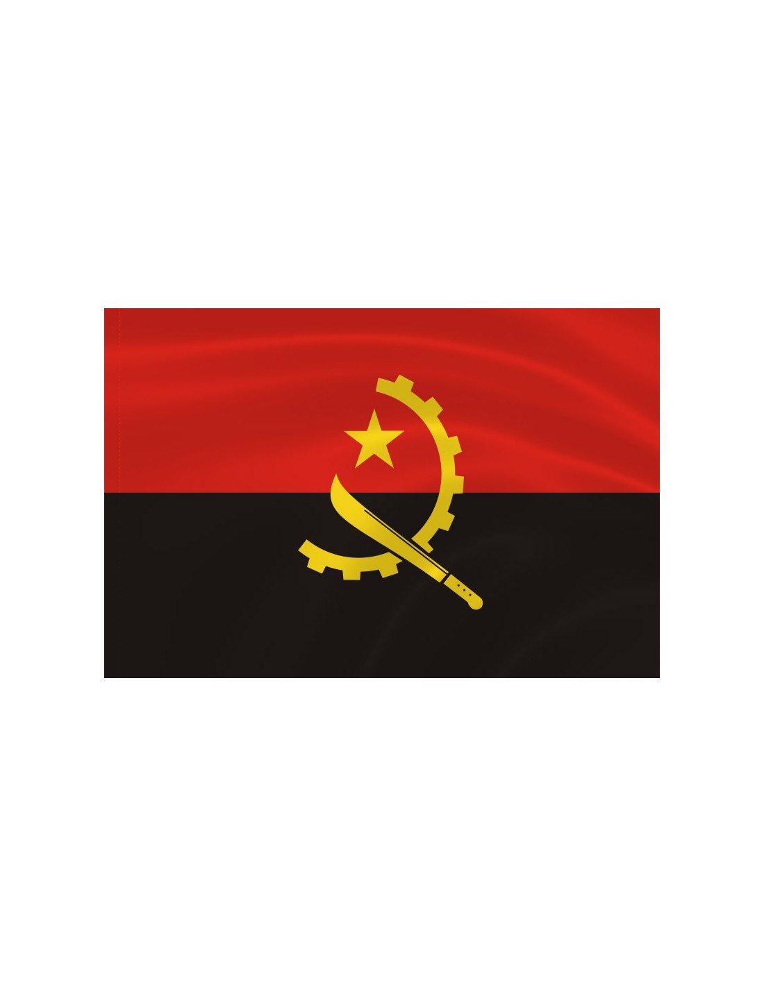 Государственный флаг Анголы состоит из двух цветов в горизонтальном положении. Верхний ярко-красный, а нижний черный. В центре флага расположена сегмент шестерни, что обозначает рабочих и индустриальное производство, мачете, обозначает крестьян, сельскохозяйственное производство и вооруженную борьбу, и звезда. Все это должно быть желтого цвета, так как это обозначает богатство страны.