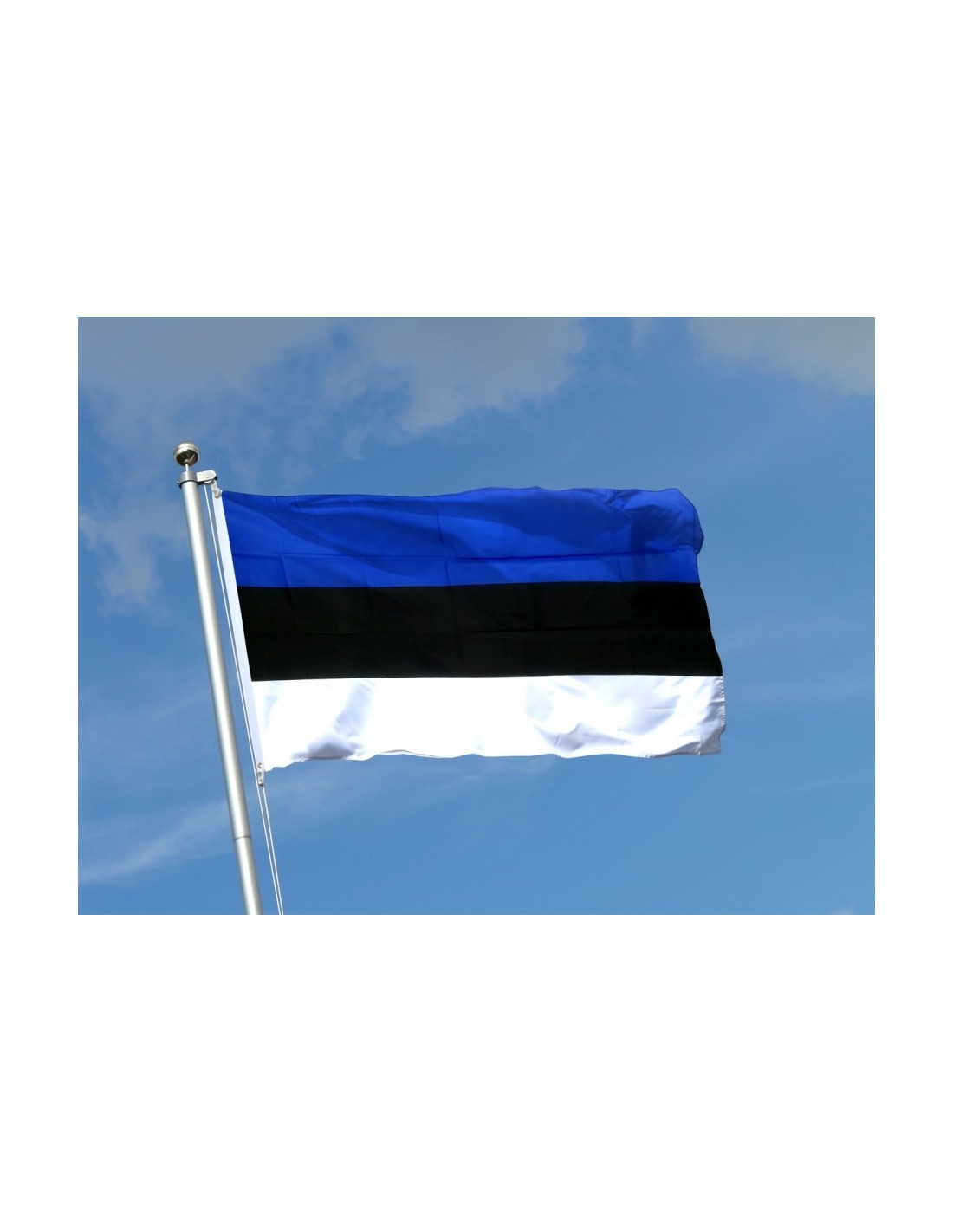 Официальный государственный символ Эстонской Республики в 1918-1940 гг. и вновь с 1990 года. Представляет собой прямоугольное полотнище, состоящее из трёх горизонтальных равновеликих полос: верхней - синего, средней - чёрного и нижней - белого цвета. Стандартный размер флага составляет 105 × 165 см. В эстонском языке в неформальной обстановке его часто называют «sinimustvalge».