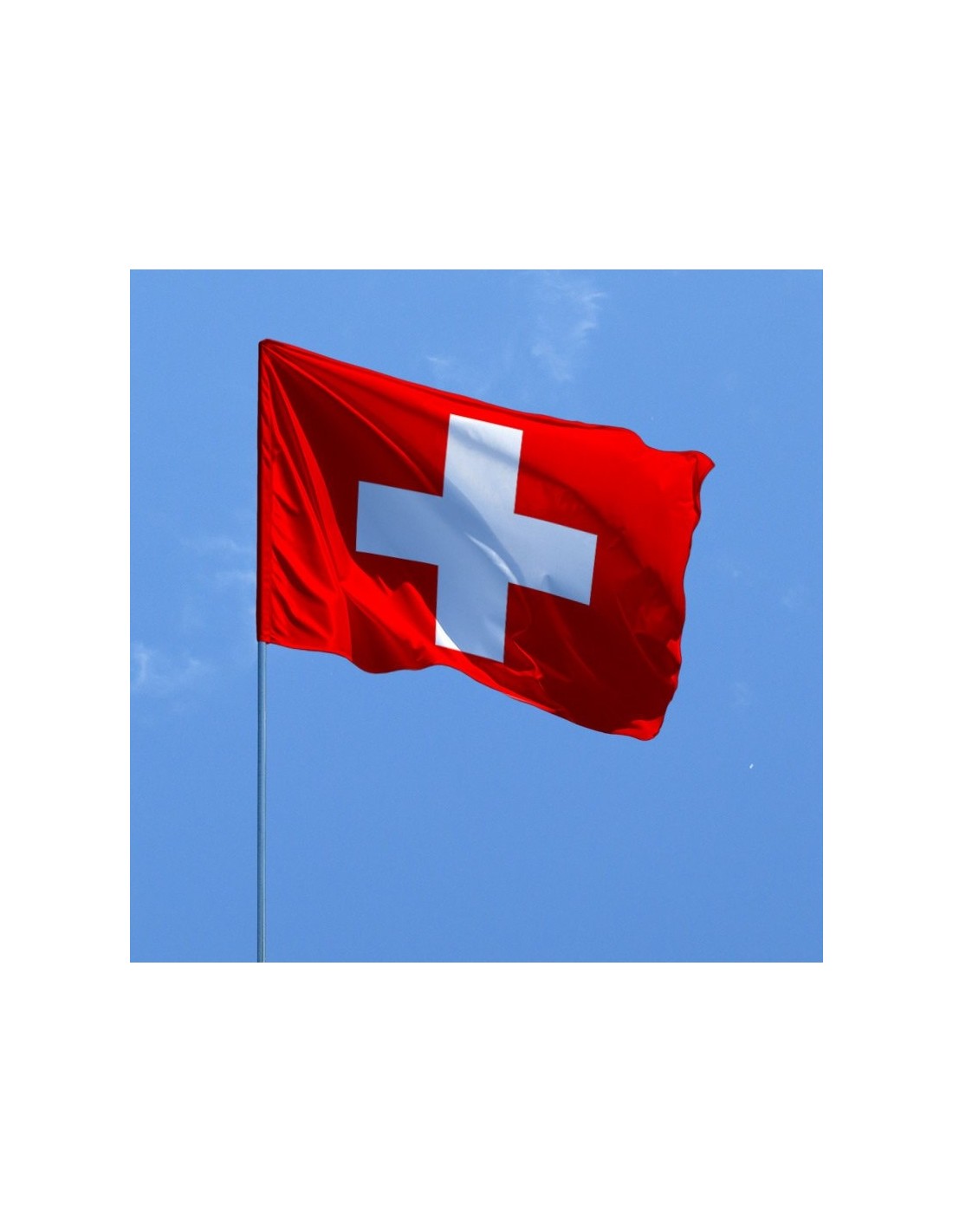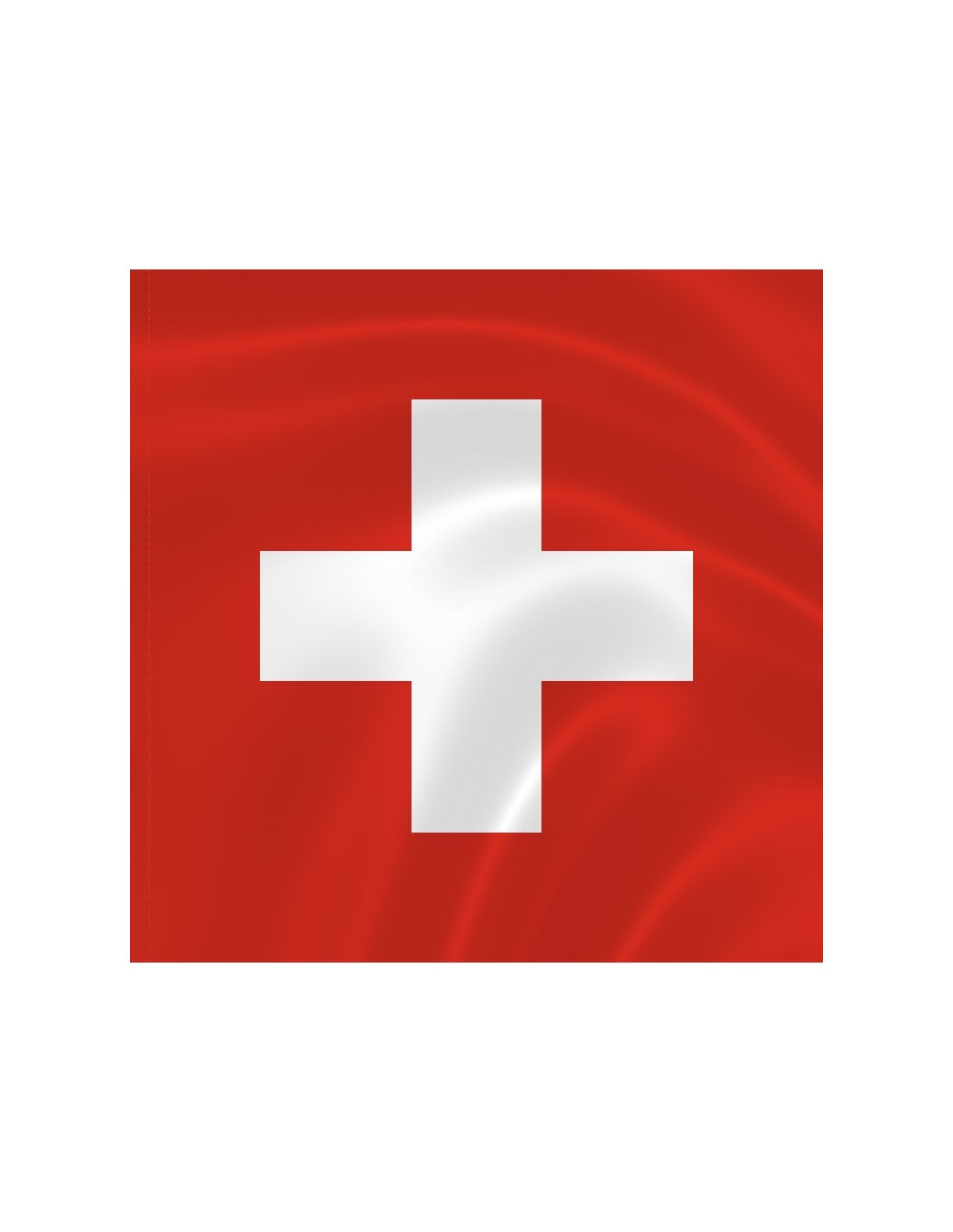 Представляет собой красное квадратное полотнище с белым прямым крестом в центре, концы крестовин которого не достигают краёв полотнища. Крестовины равновелики, и при этом длина каждой крестовины на 1/6 больше, чем её ширина. Флаг официально утверждён в качестве государственного символа Швейцарии в 1889 году.
