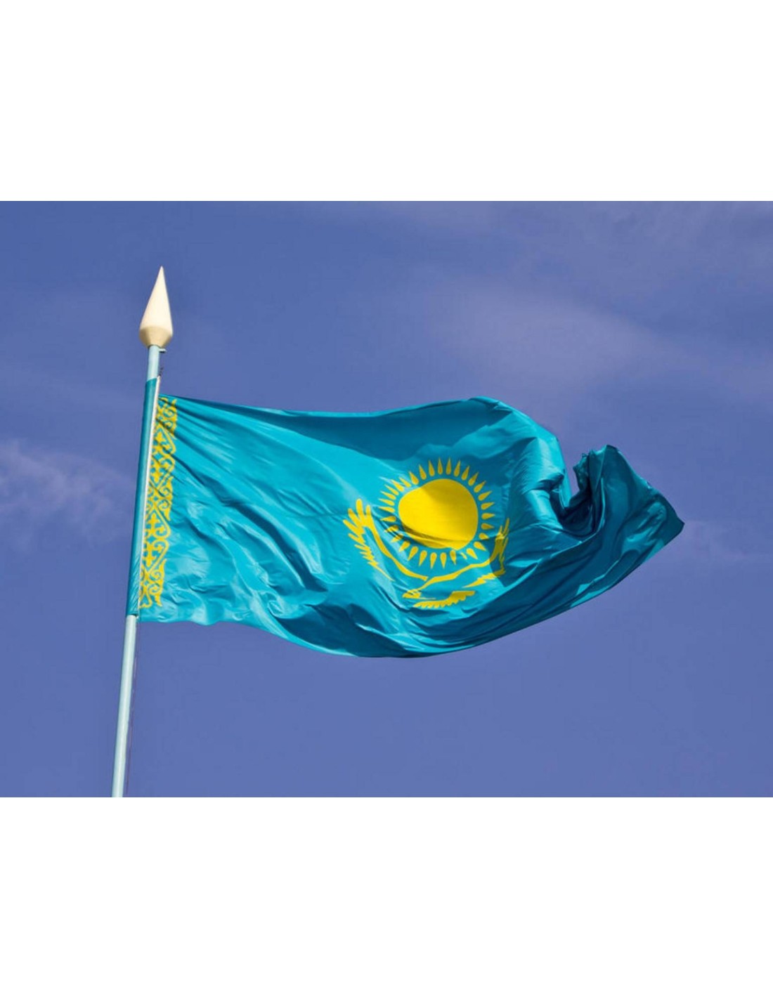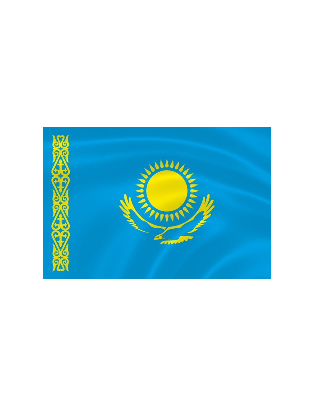 На полотнище флага, слева – национальный орнамент «кошкар-муйз», олицетворяющий культуру и национальные традиции Казахстана.