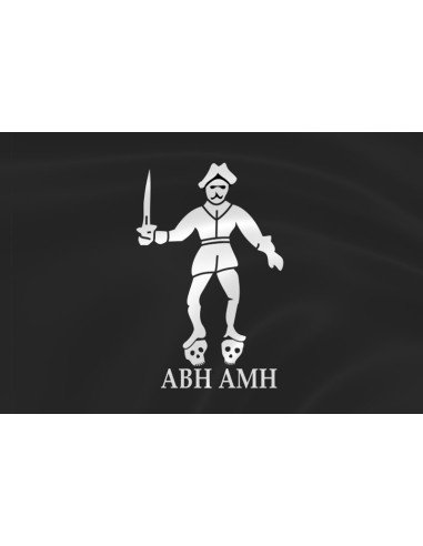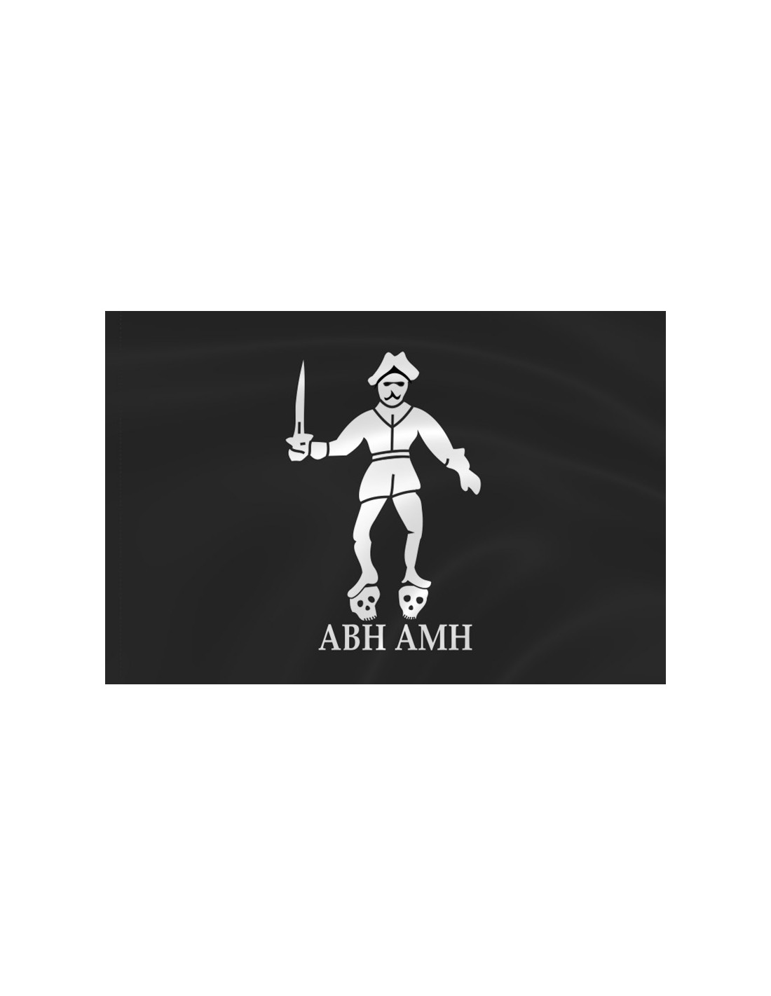 На одном из вариантов пиратского флага Робертса был изображен пират с обнаженной саблей, стоящий на головах поверженных врагов. Более того, каждый из двух черепов подписан аббревиатурой, что позволяет установить из личности. ABH– означало губернатор Барбадоса «ABarbadosHead». AMH– губернатор Мартиники «AMartinique’sHead».