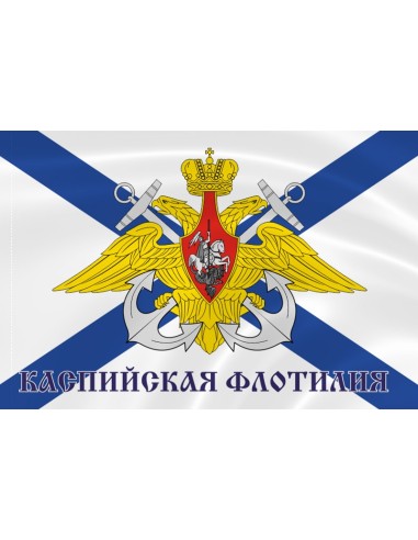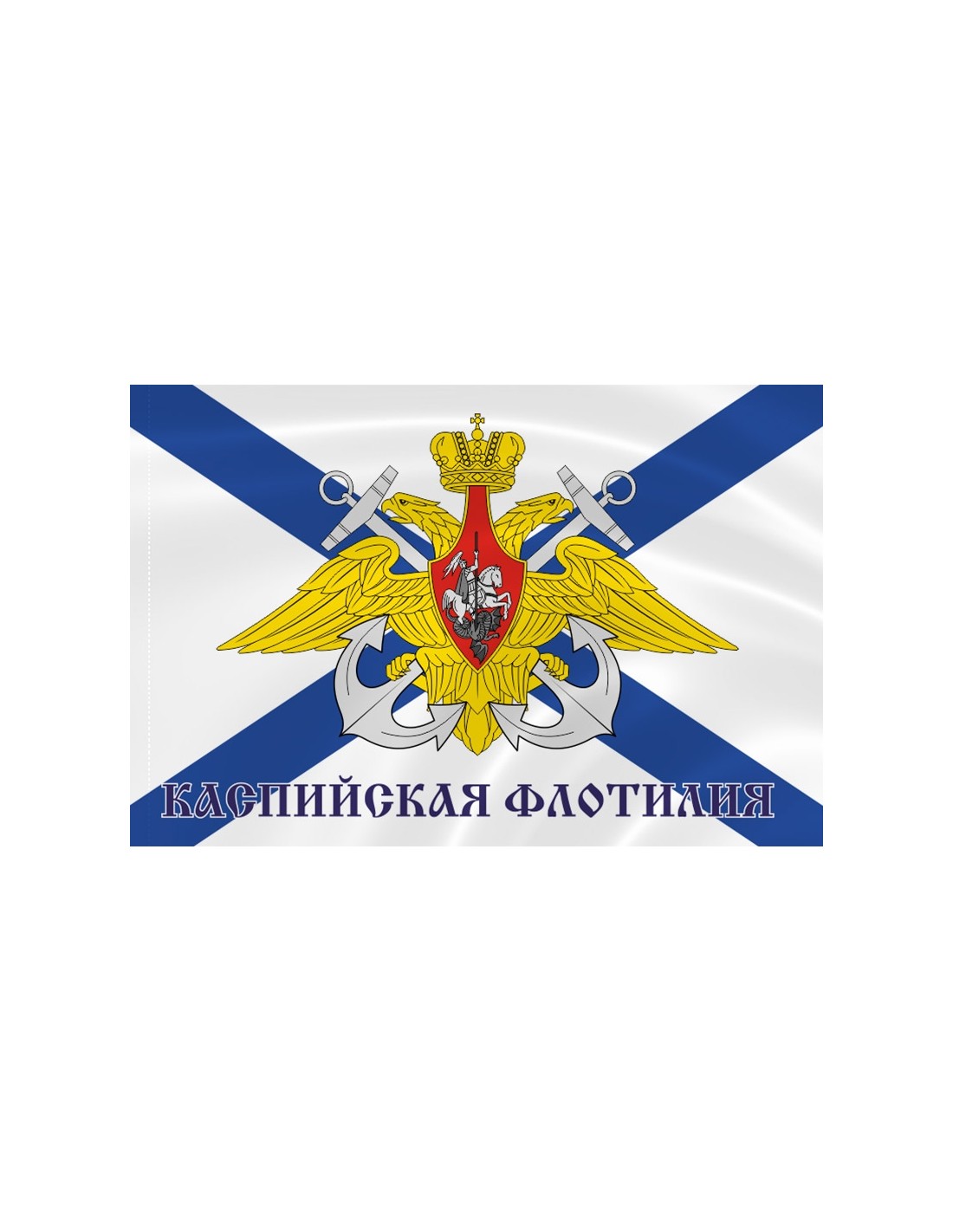 На фоне Андреевского флага изображена эмблема ВМФ и надпись Каспийская флотилия.